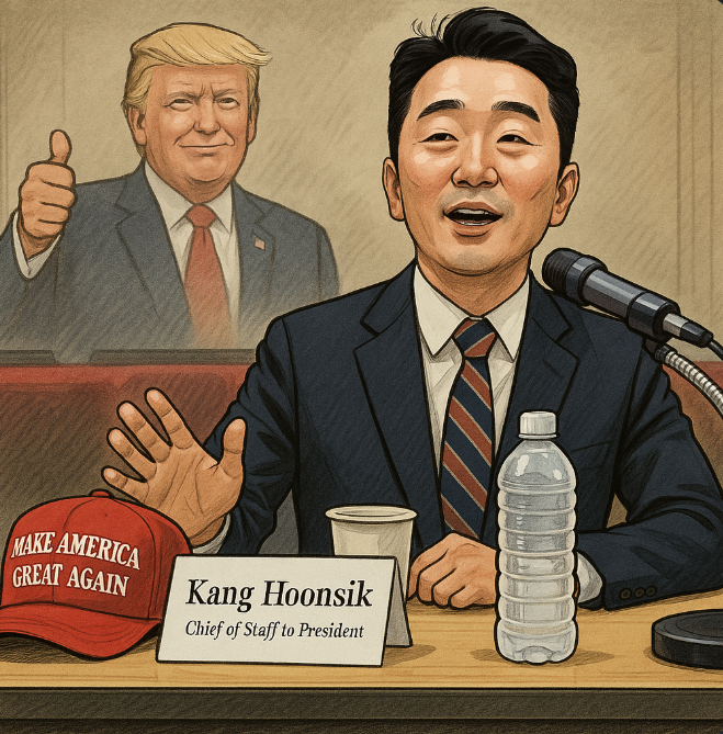 대통령 비서실장이 마치 전리품이라도 되는 양 도널드 트럼프 전 미국 대통령의 서명이 담긴 '마가(MAGA)' 모자와 정상회담 메뉴판을 전시하며 한미 정상회담의 성과를 홍보하는 기이한 풍경을 접했다. 일국의 최고 외교 무대인 정상회담의 결과를 고작 '아이돌 팬사인회'에서 얻은 기념품처럼 내세우는 행태는 아연실색할 따름이다. 이는 대한민국 외교의 현주소를 적나라하게 보여주는 비루한 자화상이자, 실질적인 국익 없이 형식적 치장에만 몰두하는 '굴종 외교'의 민낯이 아닐 수 없다.